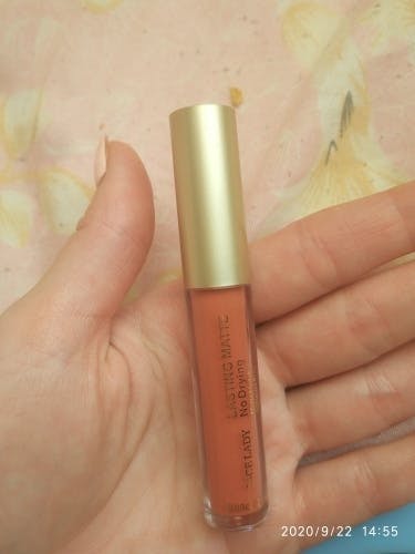 Red with an orange undertone, the shade is slightly different from the picture, when applying liquid then dries, it looks like a smear on the lips, holds for a long time