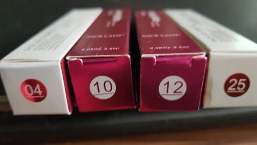 01 Nude Pink, 02 Nude Tan, 04 Neutral, 05 Warm Terra Cotta, 06 Honey Brown, 07 Plum Mauve, 08 Rosy Red, 09 Dark Red, 10 Pink Soda, 11 Orange Red, 12 Bright Pink, 16 Mauve Pink, 19 Burnt Orange, 20 Deep Wine, 21 Dark Blood Red, 23 Warm Terra Cotta, 24 Berry, 25 Coral, 26 Superstar
